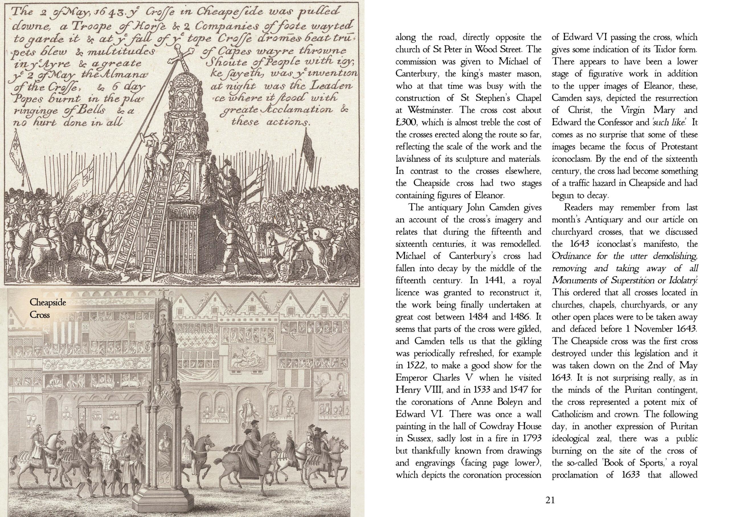 Queen Eleanor of Castile, the first wife of King Edward I, is one of the most remarkable women to grace the pages of English history. Assessing her life and reputation in 1587, the chronicler Ralph Holinshed described her as a godly and modest princess, full of pity, and one that showed much favour to the English nation, ready to relieve every man’s grief that sustained wrong, and to make them friends that were at discord, so far as in her lay. Strong praise indeed! In this issue of the Antiquary, as space allows, we will discuss very briefly Eleanor’s life. We will consider the turbulent time in which she lived and how this impacted her life and relationship with her husband. However, we want to focus attention primarily on the circumstances of her death and her burial. In the wake of her death, as he coped with his lingering grief, King Edward I would commission a quite remarkable series of monuments in memory of his late queen, and some of these great monuments still survive.
